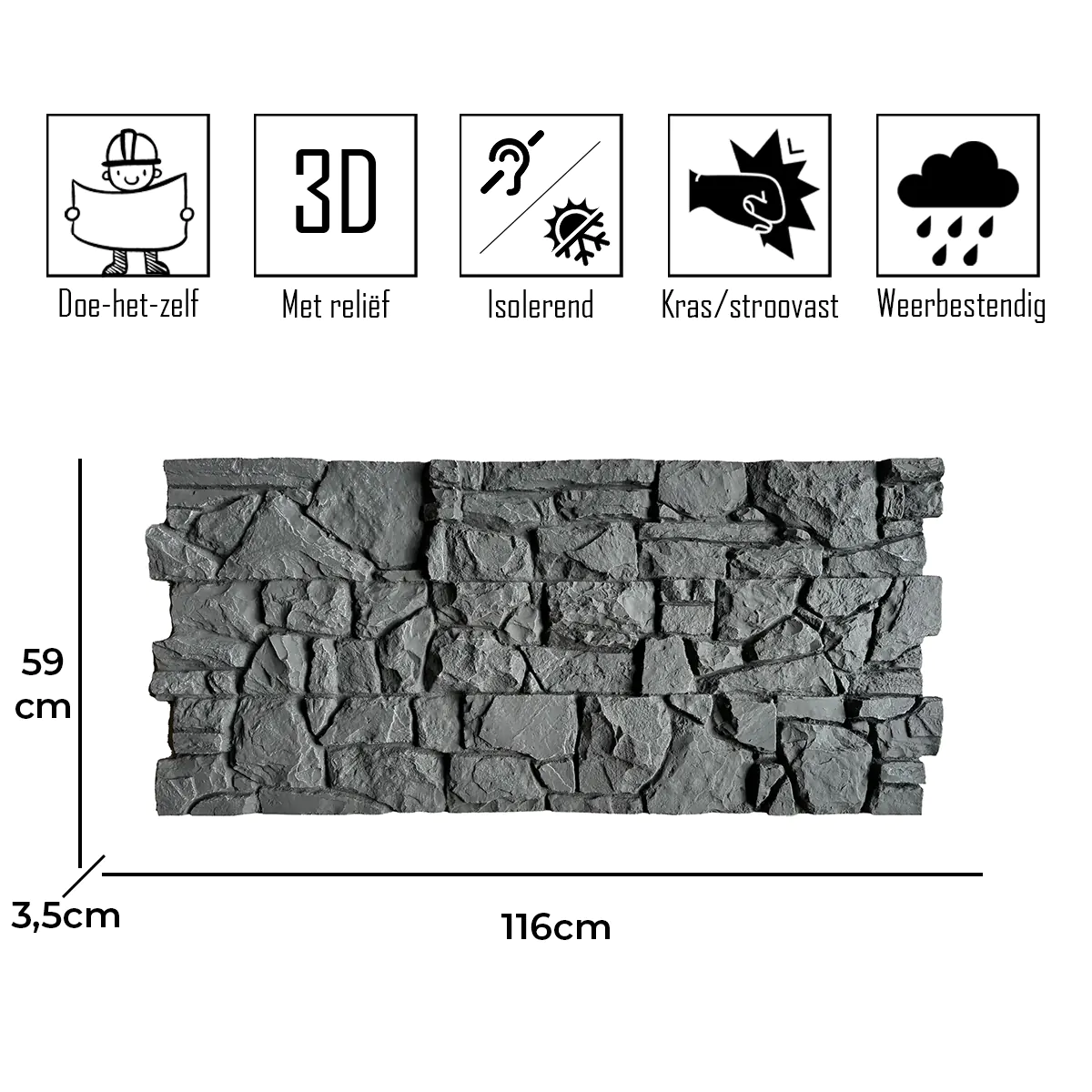 Light yet very powerful! These Arizona Anthracite Brick Strips 3D Wall Panels have the most realistic brick wall effect on the market and are made of high-density polyurethane. Each panel is individually handcrafted for a unique appearance. These Brick Strips 3D Wall Panels are ideal for decorating any room or the exterior of your home. They are durable, insulating, and waterproof, making them perfect for use in various places such as the bathroom, living room, bedroom, kitchen, and even the exterior of your house.